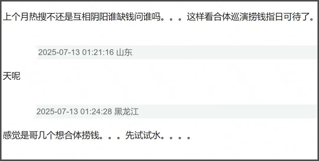 如今F4再度合体,曾经经让网友嗅觉不到兄弟情,致使簸弄能合体老到是因为“钱多”。只可说文娱圈东说念主来东说念主往,只消网友看得欢快,真真假假也没所谓啦!