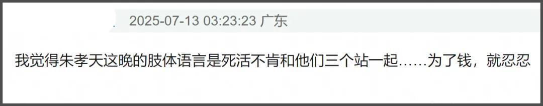 亦然在这里让网友合计奇怪,朱孝天仿佛和其他三个东说念主中间有壁,融不进去的嗅觉。
